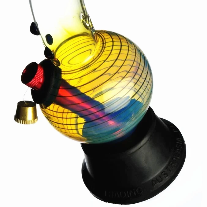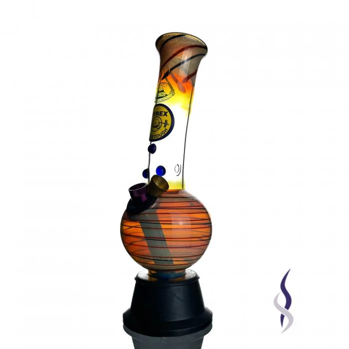 3D dots on the neck. The colours in the glass change when in use. Each bong is unique and colours slightly vary on delivery.