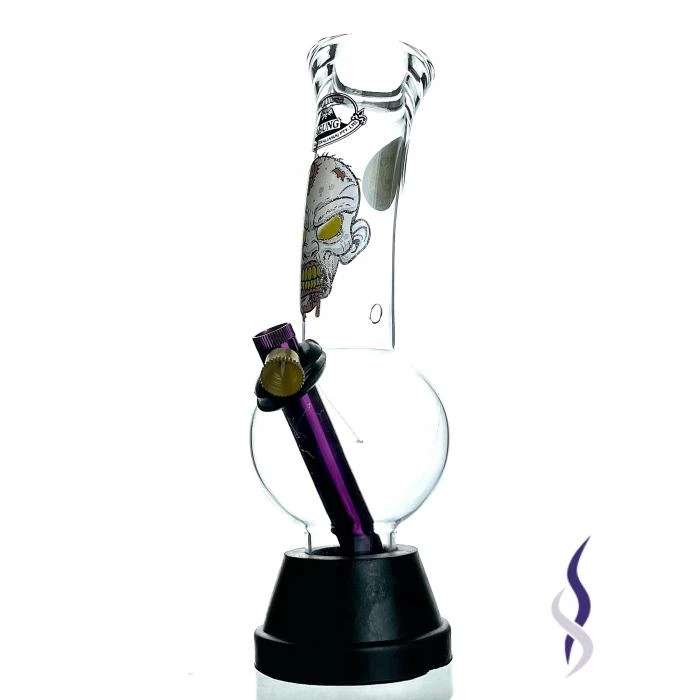 Classic Agung bubble glass bong with ZOMBIE picture design printed on neck and a flared mouthpiece.
