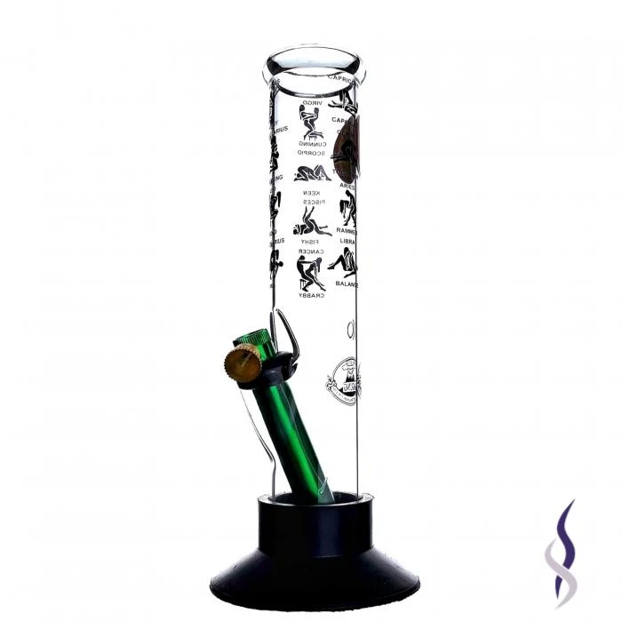 Medium size Agung glass bong with up-straight body which interesting multi sexy pictures are printed on. Color of the stem may be different.