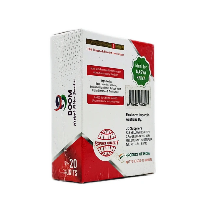 It is a handmade herbal product without tobacco. These herbs are grown organically in fields of India and hand-picked selectively to create unique flavour profiles. Boom herbal mixes are completely nicotine-free products.
