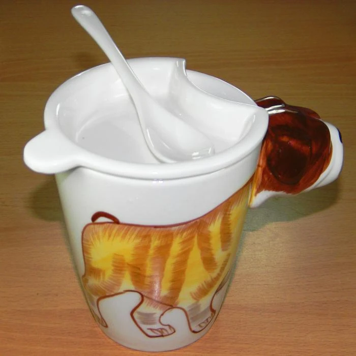 Hand Paint 3D Coffee Tea Mug Bulldog With Lid Spoon