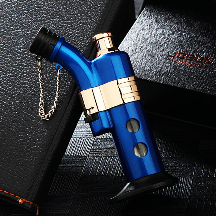 Jobon Chain Lid Window Metal Standing Jet Lighter Gift Box Blue
