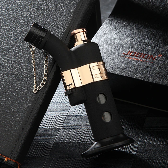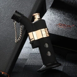 Jobon Chain Lid Window Metal Standing Jet Lighter Gift Box Matt Black