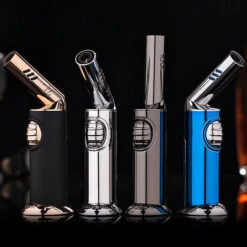 Jobon’s new classic style Jet Lighter. One trigger for both opening lid and igniting. Windproof, Refillable