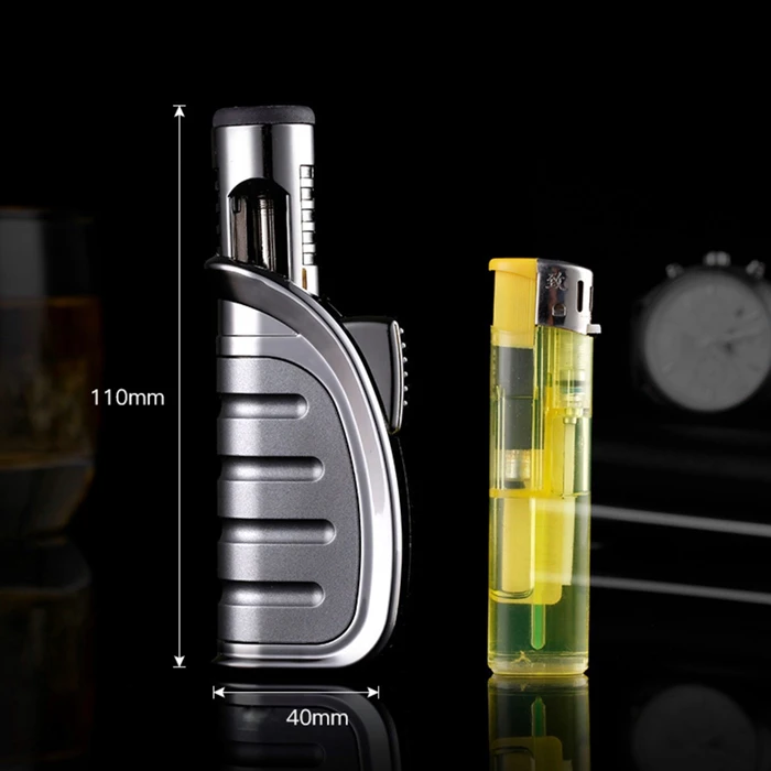 A sail shape jet lighter from JOBON. A specially designed nozzle makes an extra-strong flame. Flame adjusting screw locates at the bottom of the lighter.