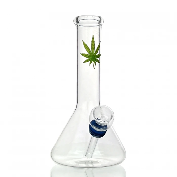 MWP Small Glass Beaker Bong With Leaf 13cm
