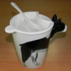 Hand Paint 3D Coffee Tea Mug Border Collie Dog With Lid Spoon