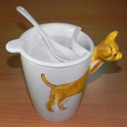 Hand Paint 3D Coffee Tea Mug Border Collie Dog With Lid Spoon