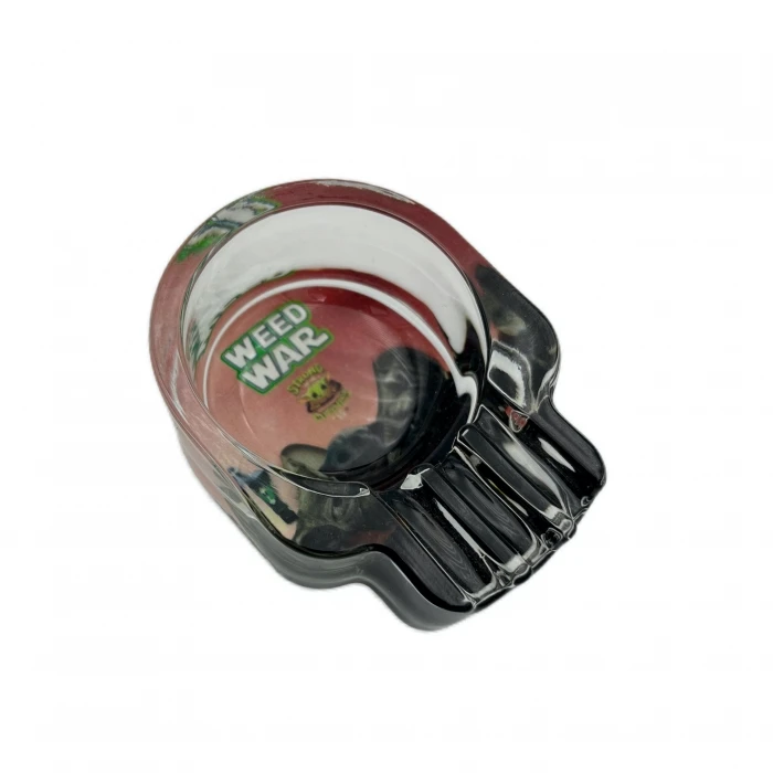Heavy thick glass ashtray. With a Weed War picture on the bottom.