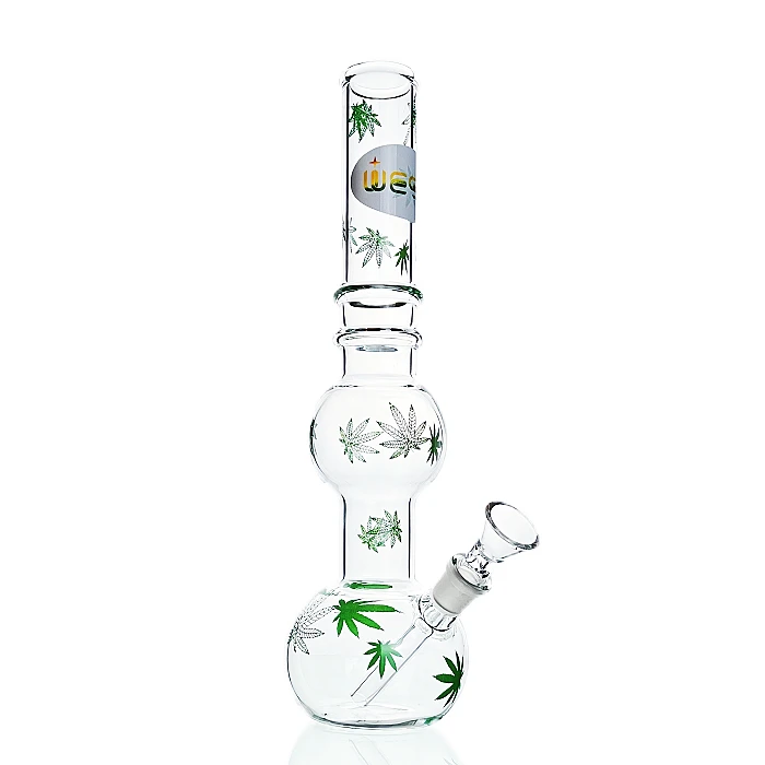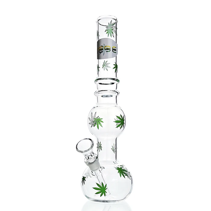 A double bubble bong with weeds is printed all around the body. The gap between the two bubbles is just right for you to hold the bong.